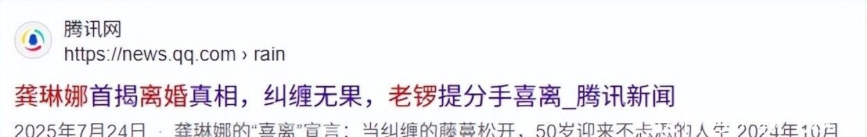 2.腾讯网:龚琳娜首揭离婚真相,纠缠无果,老锣提分手喜离